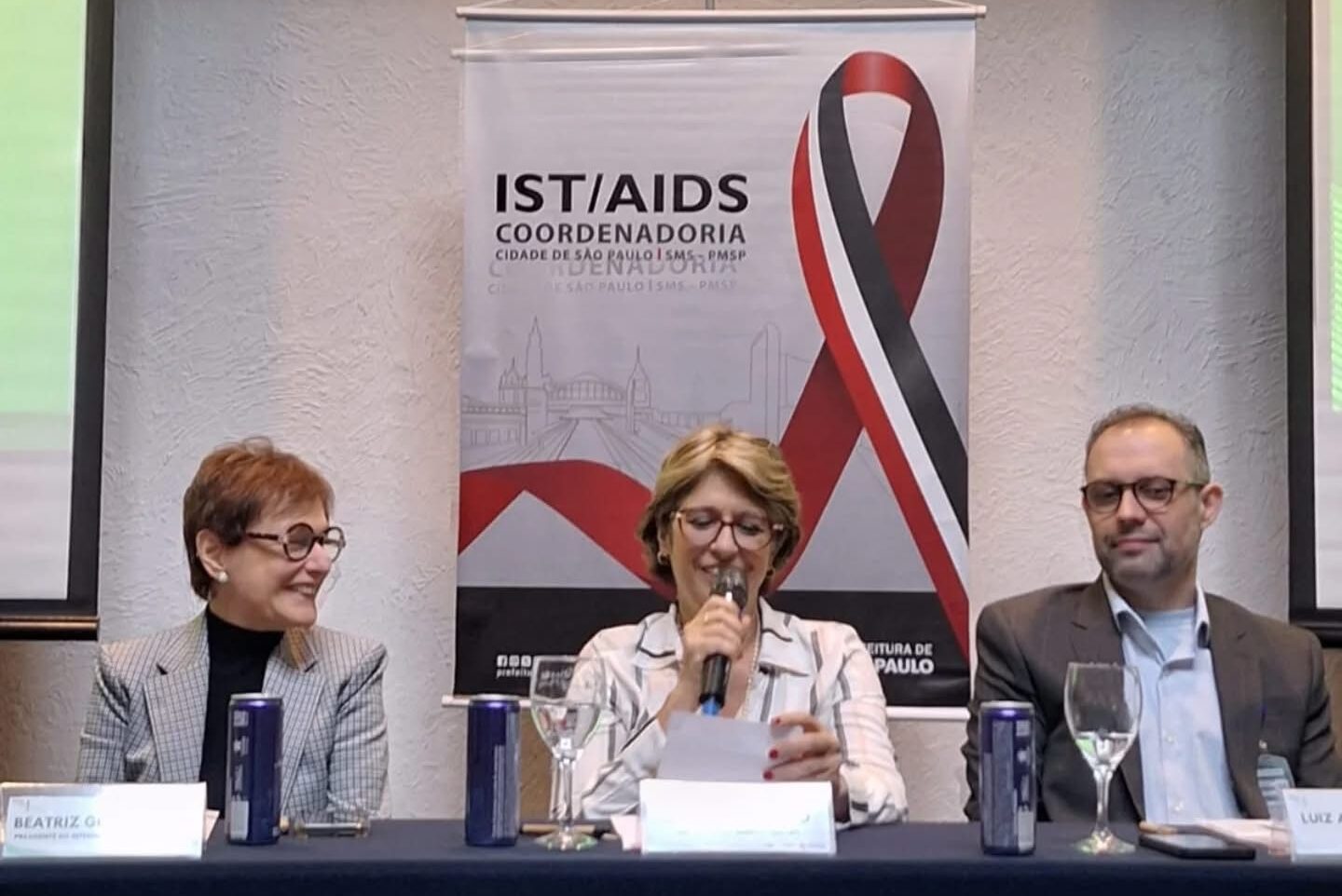 A mesa de abertura contou com Mariza Vono Tancredi, do Programa Estadual de IST/Aids de São Paulo, Carmen Silvia Carmona de Azevedo, do Comitê de Ética em Pesquisa da SMS/SP, Mariana Braga, da Unesco Brasil, Dra. Valdiléa Velos, do Instituto Nacional de Infectologia Evandro Chagas/Fiocruz, Cristina Abbate, da Coordenadoria Municipal de IST/Aids, Luiz Artur Vieira, chefe de gabinete da Secretaria Municipal de Saúde e Sandra Sabino, secretária-executiva da Atenção Básica, Especialidades e Vigilância em Saúde.