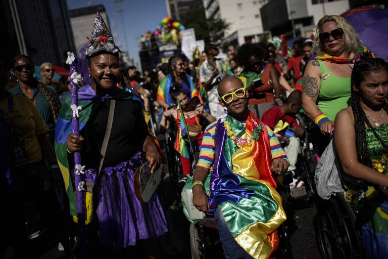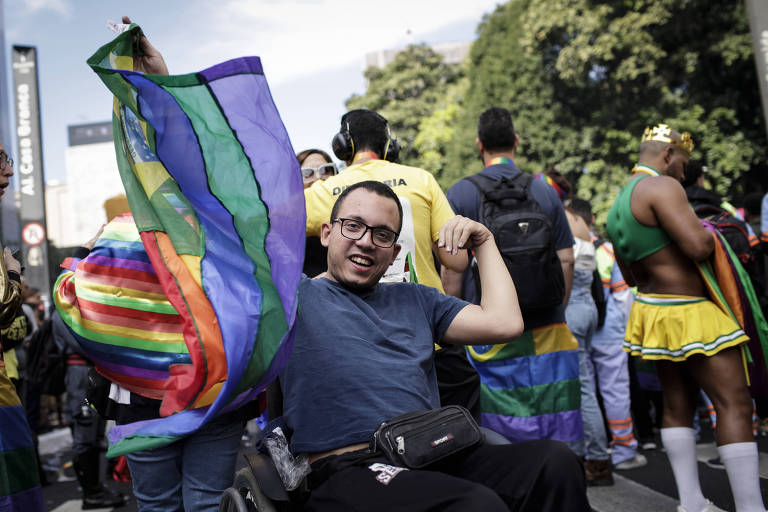 Também cadeirante e se dizendo bi, o estagiário Manoel Lucas Moreira, 27, fez sua estreia na Parada. “Minha família é muito preconceituosa”, disse. “Mas eu tenho a mente aberta. Nós temos o direito de estarmos onde bem quisermos.”