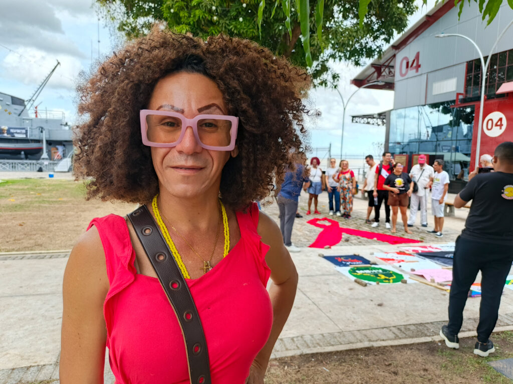 Jéssica Marajoara, 46 anos, mulher-travesti que vive com HIV há 22 anos, compartilhou sua trajetória e destacou a importância de romper com o estigma.