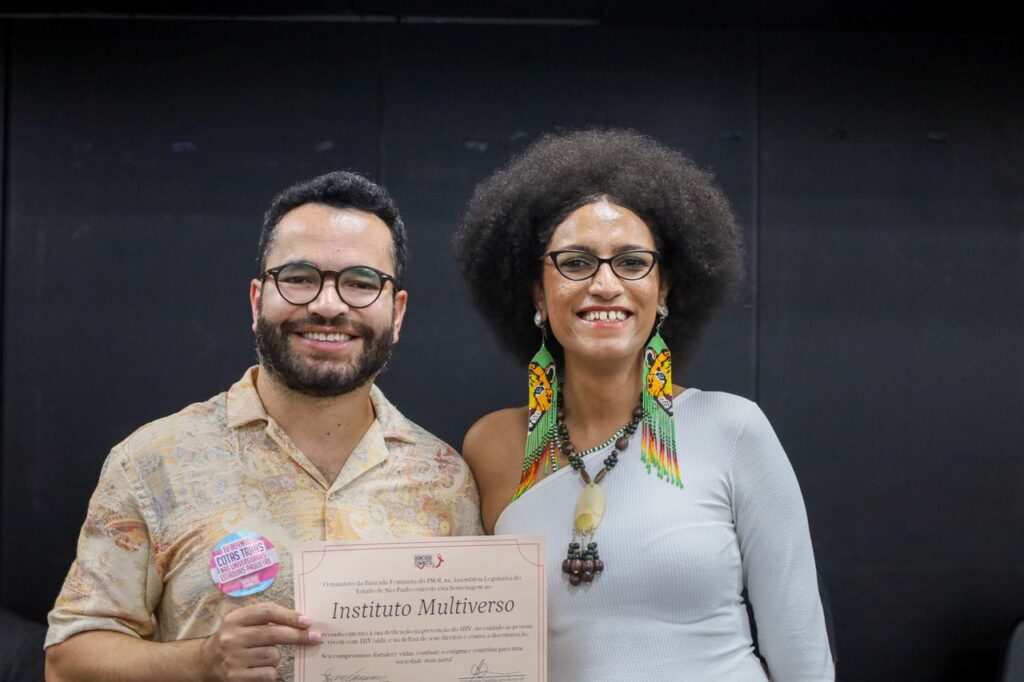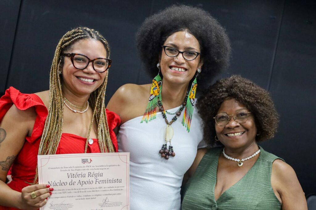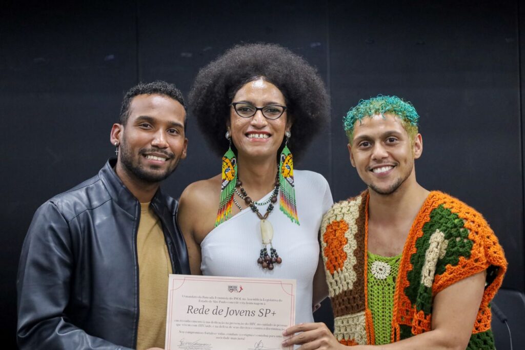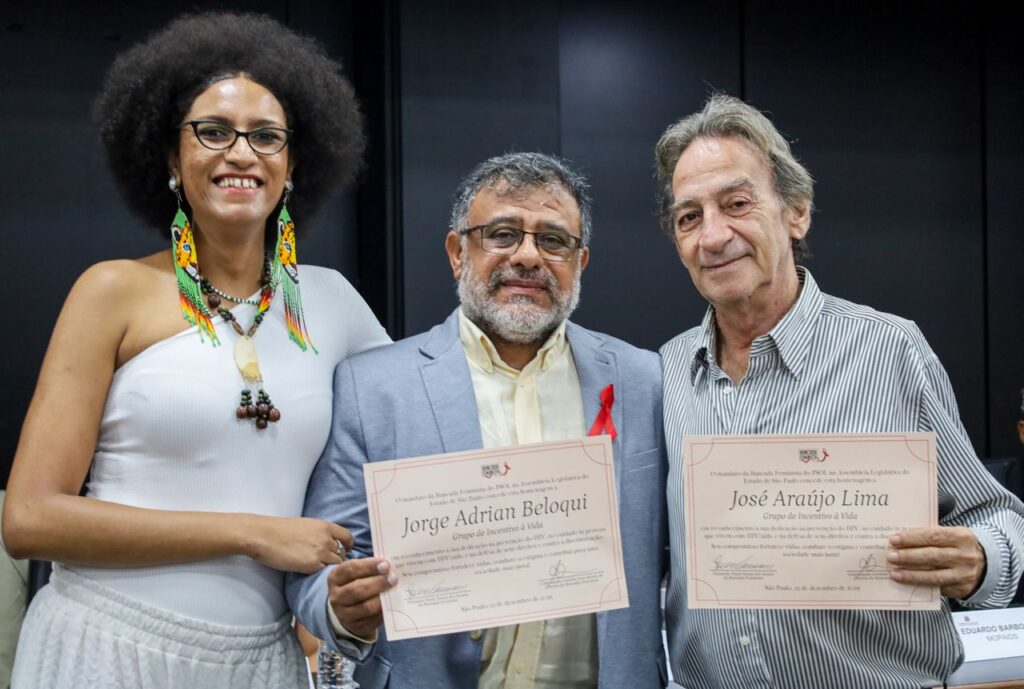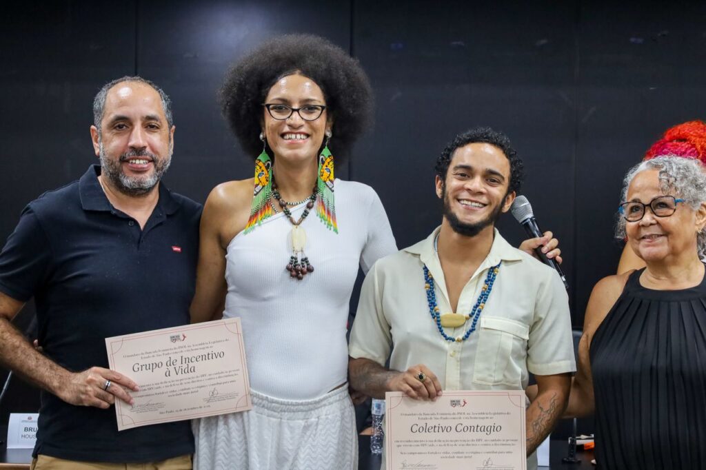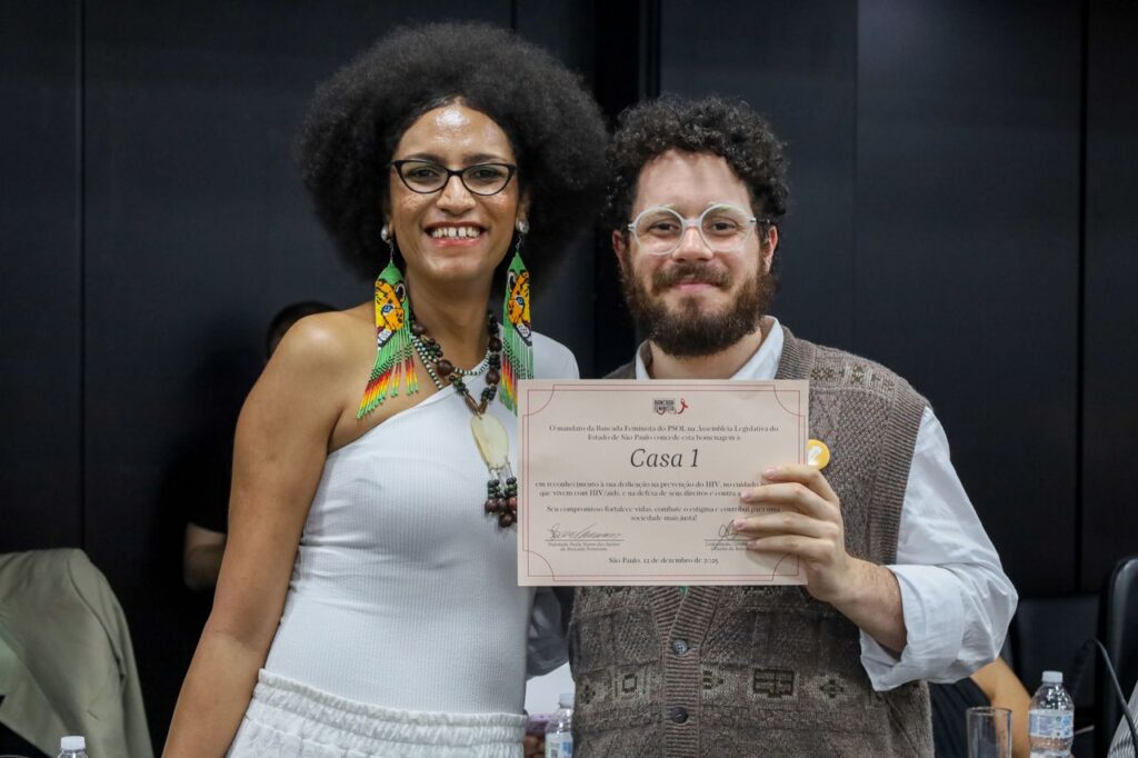 Carol citou o papel fundamental de organizações como o Grupo de Incentivo à Vida (GIV), o Grupo Pela Vidda São Paulo e outras entidades do movimento social. “Quando eu bati na porta do GIV, quando eu bati na porta do Pela Vidda, quando eu bati na porta do movimento de aids, foi o movimento que me acolheu”, afirmou, emocionada.