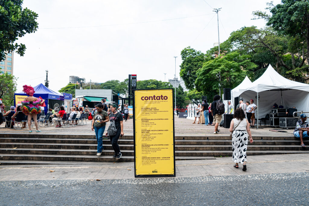 O Festival Contato trouxe para a Praça da Sé a intervenção “Mais Arte, Menos Aids 2025”. O evento foi realizado pelo Sesc de São Paulo e Agência de Notícias da Aids em parceria com a equipe do Sesc Carmo, e, neste ano, a iniciativa contou com o apoio da Coordenadoria Municipal de IST/Aids de São Paulo, das farmacêuticas Gilead e GSK/ViiV Healthcare e da Casa Gil Gondim, apresentando uma programação diversificada e chamando a atenção para nossa vulnerabilidade ao HIV e demais infecções sexualmente transmissíveis.
