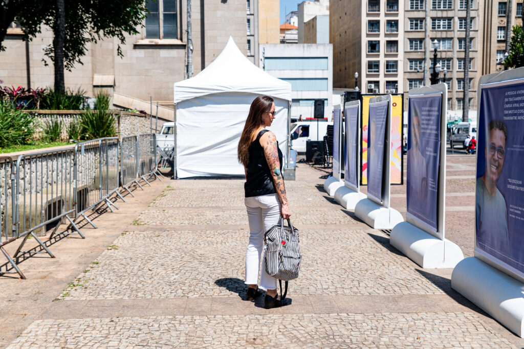 Na Praça da Sé, a exposição “Indetectável=Zero (I=0)” transformou o coração da cidade em um espaço de informação e empatia. Seis banners com fotos e depoimentos de pessoas vivendo com HIV que mantêm carga viral indetectável por usarem continuamente a medicação que controla a replicação do vírus — um lembrete poderoso da importância da adesão para manter a saúde e evitar novas infecções
