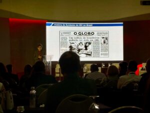 A pesquisadora destacou momentos-chave: a criação do programa brasileiro de HIV em 1987, a produção nacional de diagnósticos na Fiocruz, a introdução do AZT em 1992 e, em 1996, a lei que garantiu acesso universal ao tratamento.