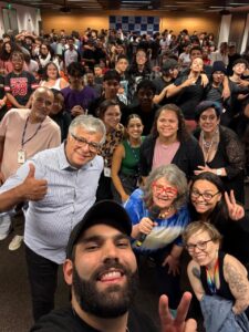 “Hoje vamos conversar sobre vida. Vida é amor. Somos resultado do amor dos nossos avós, dos nossos pais. Quando falamos de cuidado, falamos de afeto”, disse, enquanto resgatava manchetes sensacionalistas que alimentaram o pânico moral, o abandono de famílias inteiras e a desinformação que, até hoje, sustenta preconceitos e silêncios.