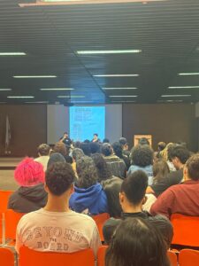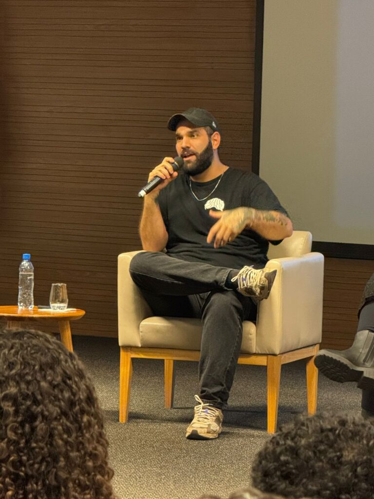 A fala mais aguardada pelos estudantes era a do influenciador digital e publicitário Lucas Raniel, 33 anos, que vive com HIV há mais de uma década. Ele contou como recebeu o diagnóstico ainda muito jovem e como isso impactou diretamente sua vida.