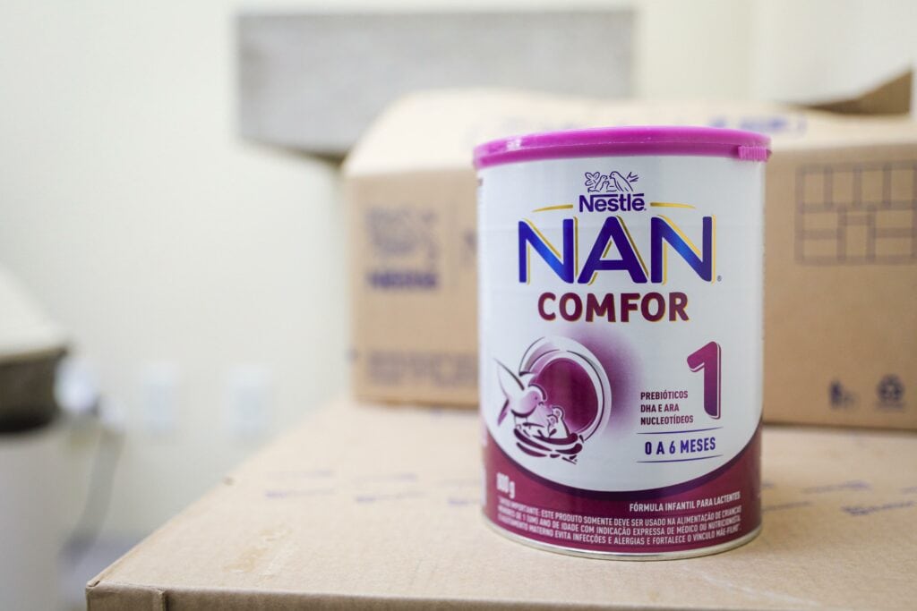 A mãe recebe fórmula suficiente para dar tempo de chegar ao dia da consulta com a pediatra, e aqui é entregue uma caixa com seis latas de 800g, na assistência social”, acrescentou Charlene.