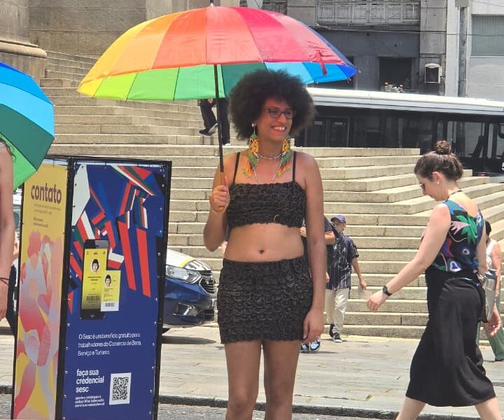 Foi nesse espírito que o desfile “Camisinha: a gente pode usar, está disponível no SUS”, com peças confeccionadas a partir de preservativos reaproveitados, tomou o centro da cidade. As roupas assinadas por Adriana Bertini, que há quase três décadas transforma materiais descartados em arte e diálogo, vestiram mulheres que protagonizam a luta por direitos e prevenção.