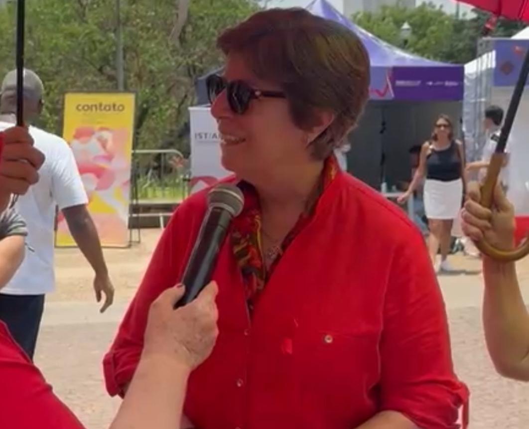 Silvia Almeida durante o evento na Praça da Sé