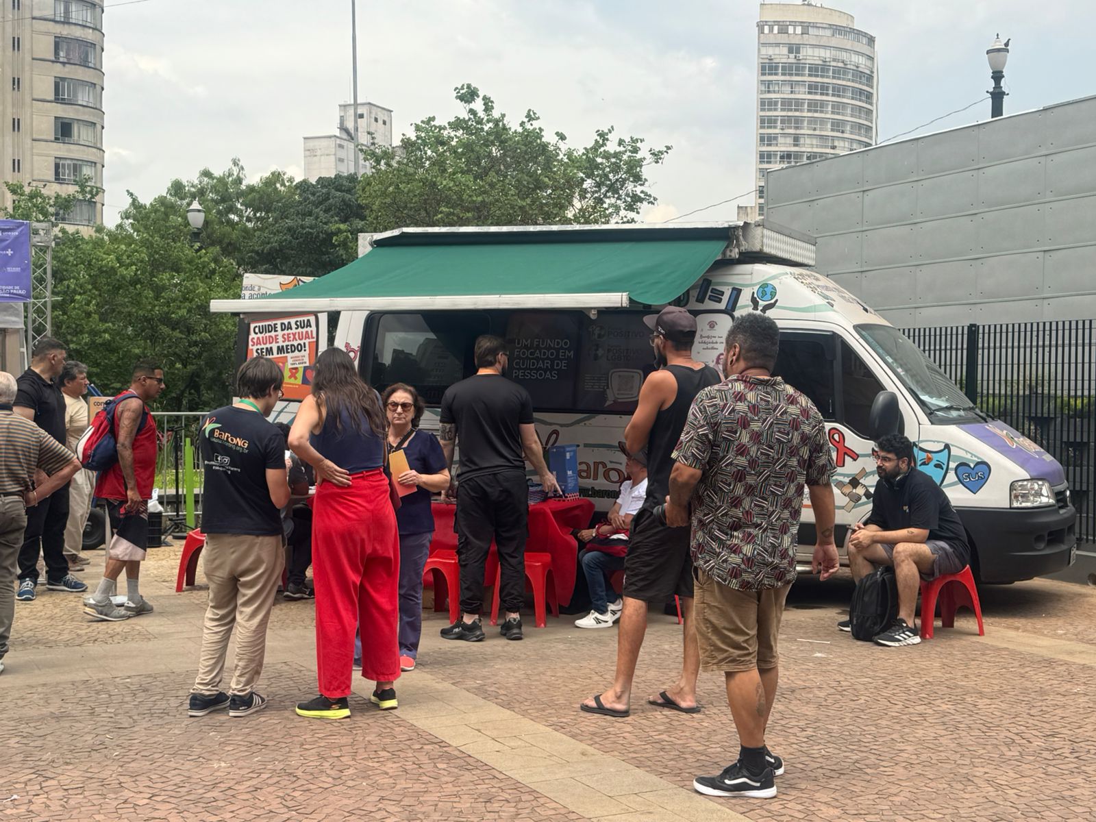 Em uma intervenção inédita, artistas, ativistas, profissionais de saúde e a população que cruzou o Marco Zero de São Paulo compartilharam histórias, fizeram testagem, retiraram insumos de prevenção e transformaram o centro da capital em um ato vivo contra o estigma.