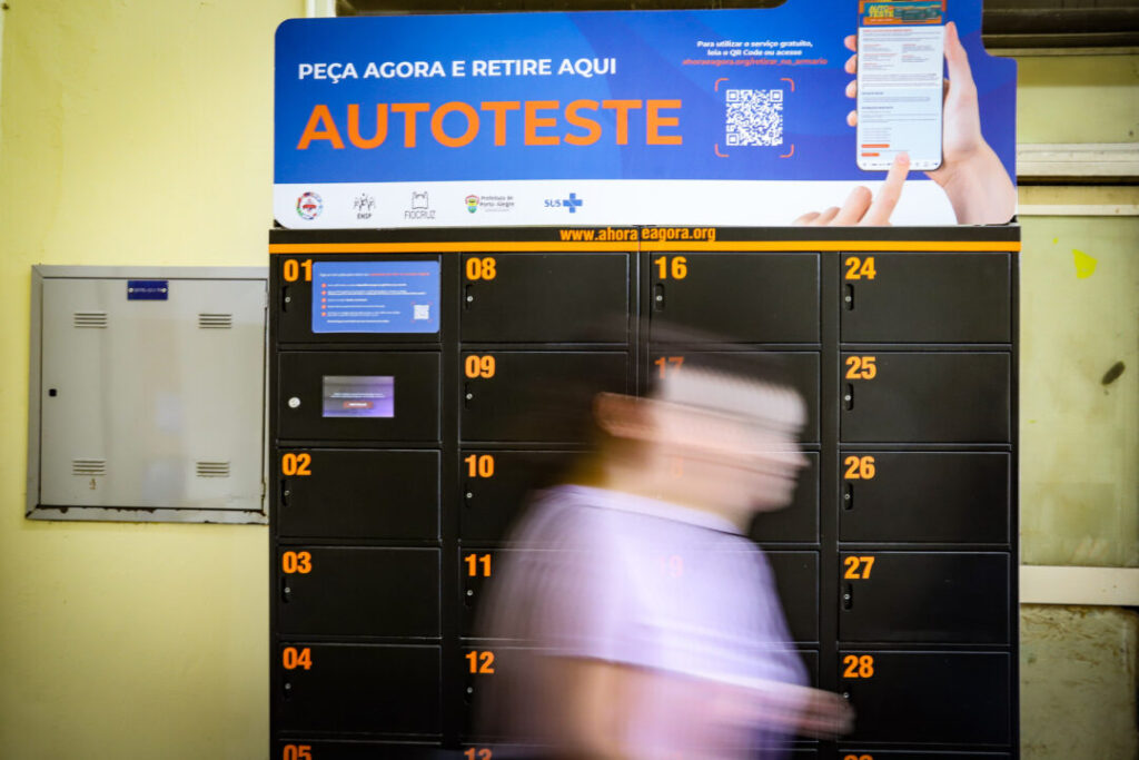O Mercado Público de Porto Alegre recebeu um armário no qual podem ser retirados gratuitamente autotestes de HIV. A iniciativa faz parte do programa “A Hora é Agora”, desenvolvido em parceria com a Fundação Oswaldo Cruz (Fiocruz) e o Centro de Controle de Doenças e Prevenção dos Estados Unidos. A retirada do autoteste pode ser feita a partir de inscrição no site.