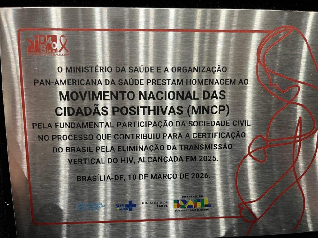 A placa entregue durante o evento, realizado em Brasília, destaca a participação fundamental da sociedade civil no processo que permitiu ao Brasil alcançar esse reconhecimento internacional. Entre os atores centrais dessa trajetória está o MNCP, rede formada por mulheres vivendo com HIV que, ao longo de décadas, transformaram suas próprias experiências em mobilização social, acolhimento e incidência política.