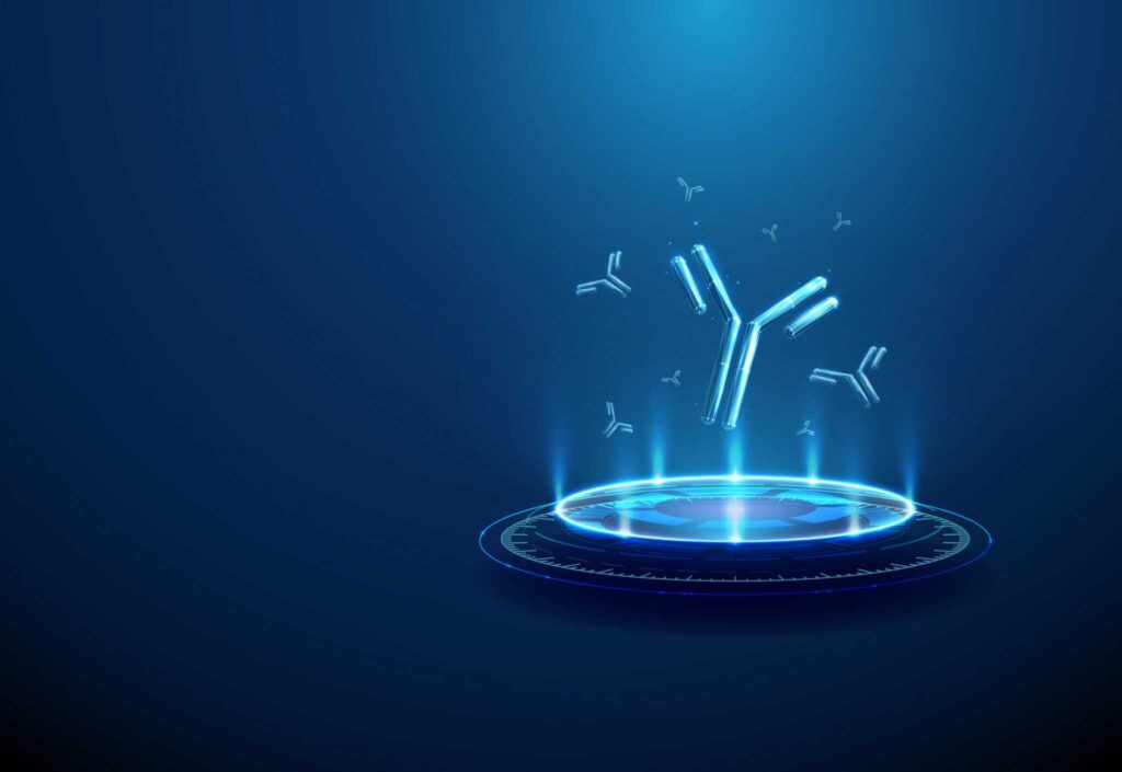 - Microscopia crioeletrônica (cryoEM), que utiliza um feixe de elétrons para capturar imagens de anticorpos se ligando a seus alvos com resolução quase atômica;
