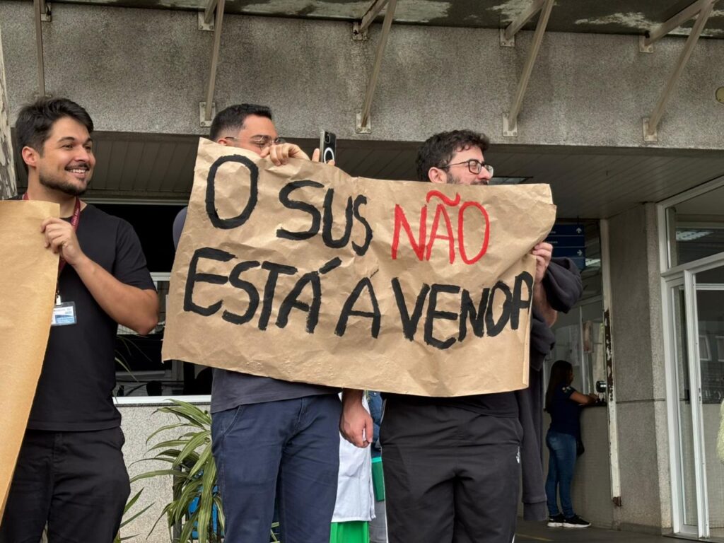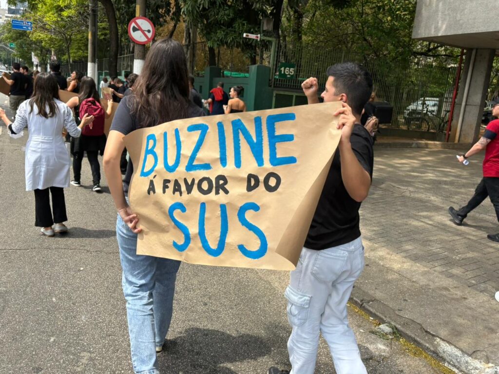 Durante a manifestação, os participantes exibiram cartazes com mensagens como “Terceirizar é precarizar”, “O SUS não está à venda”, “Saúde não é mercadoria”, “Basta de precarização” e “Queremos Emílio Ribas por inteiro”. Também se viam frases como “Convocação de concursos já” e “Buzine a favor do SUS”, chamando atenção de quem passava pelo local.