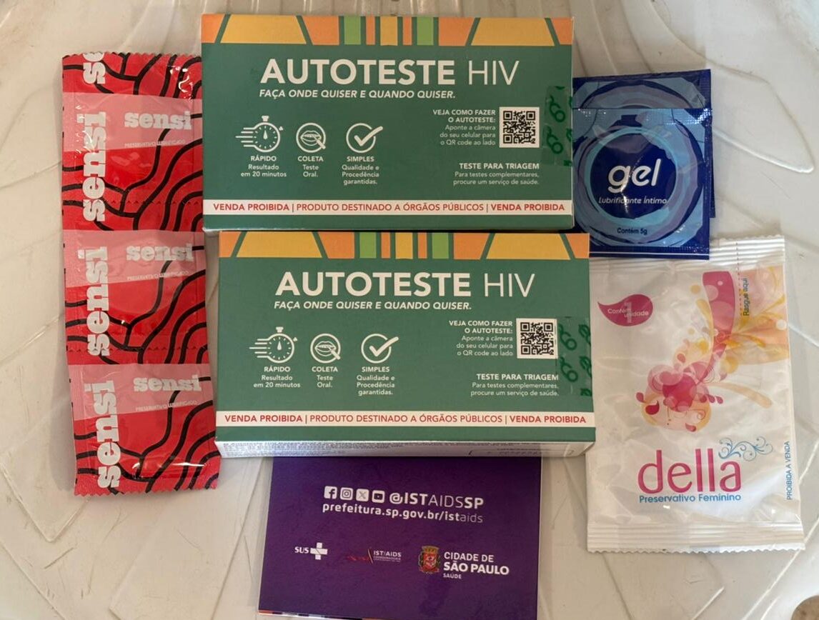 “A pessoa consegue retirar o kit com dois autotestes para HIV, preservativo interno, preservativo externo, gel lubrificante e um folheto informativo, com os endereços das nossas unidades e informações sobre a prevenção combinada”, explica o assessor.